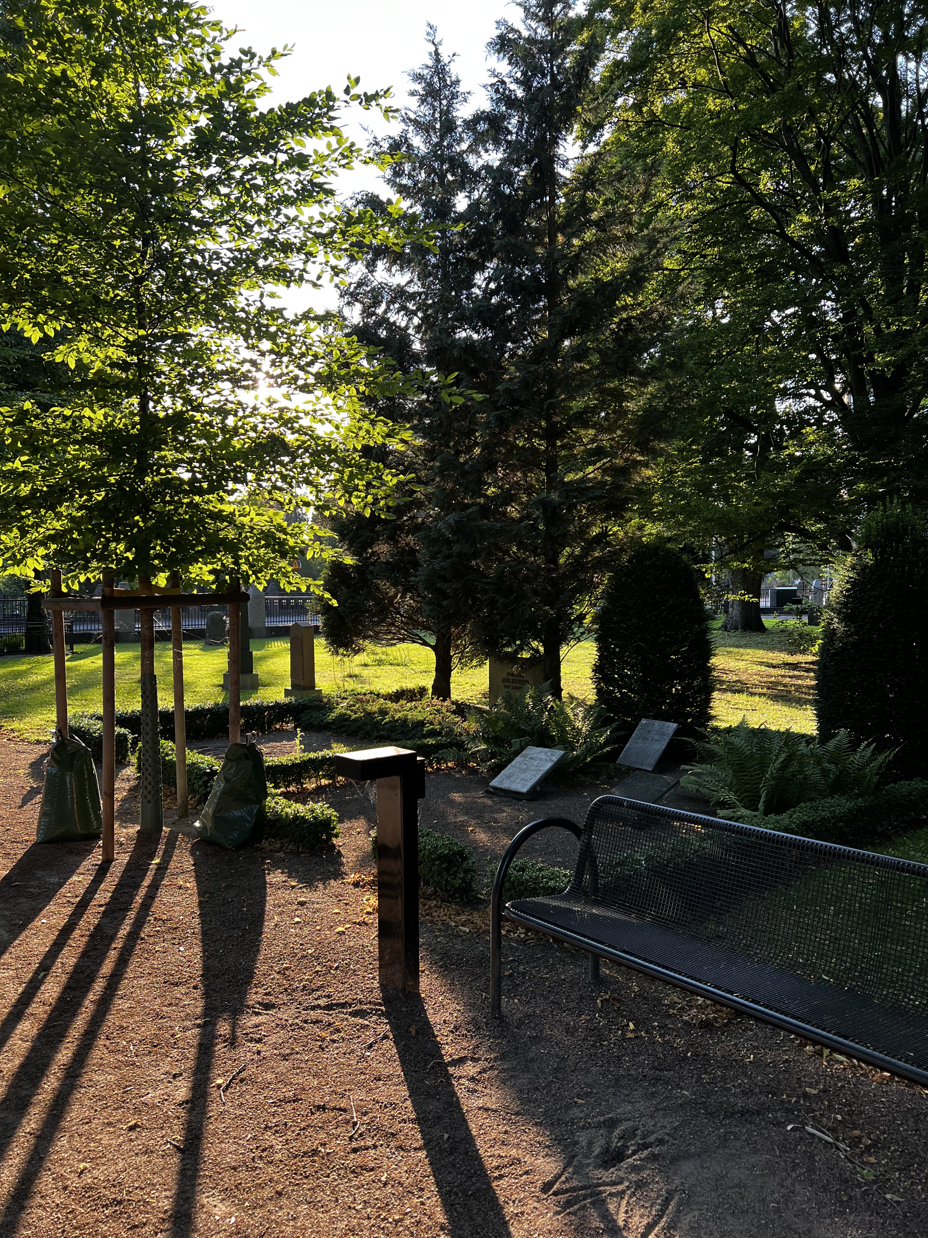 Ensuite, nous redescendons à pied jusqu’à la Vieille Ville. Le trajet nous mène à travers un parc jusqu’au Casino, puis au jardin de Gamla kyrkogården – où nous découvrons un cimetière du XIXe siècle qui se fond discrètement dans le paysage, au milieu des promenades familiales et des joggeurs en quête d’exercice.