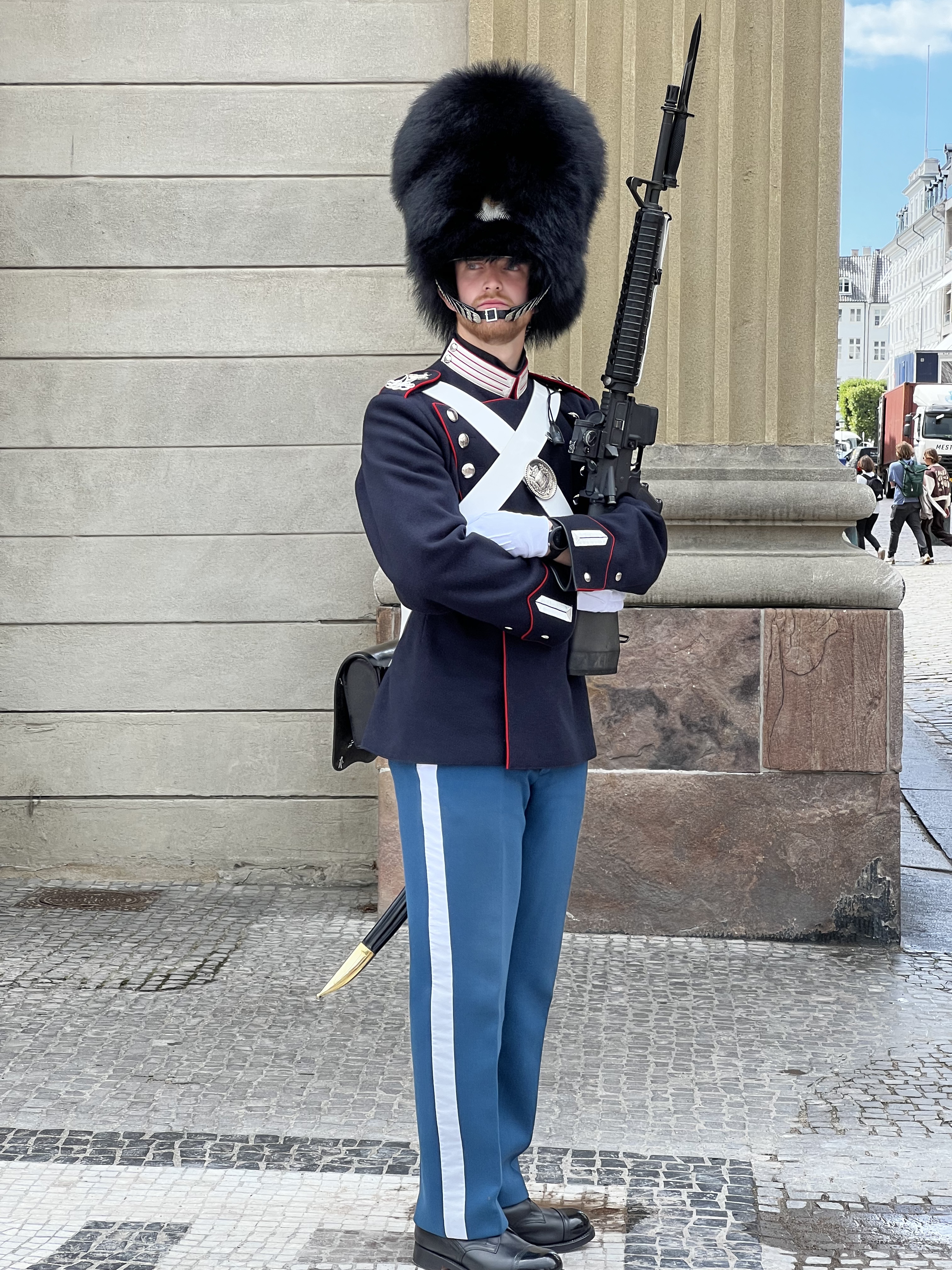 Pour notre ultime journée, nous avons choisi de débuter notre exploration par le prestigieux quartier d’Amalienborg, un lieu iconique de la ville qui abrite la résidence royale danoise. La place en elle-même est déjà impressionnante, mais elle revêt une grandeur encore plus saisissante lorsqu’elle devient le théâtre quotidien de la relève de la garde à midi.