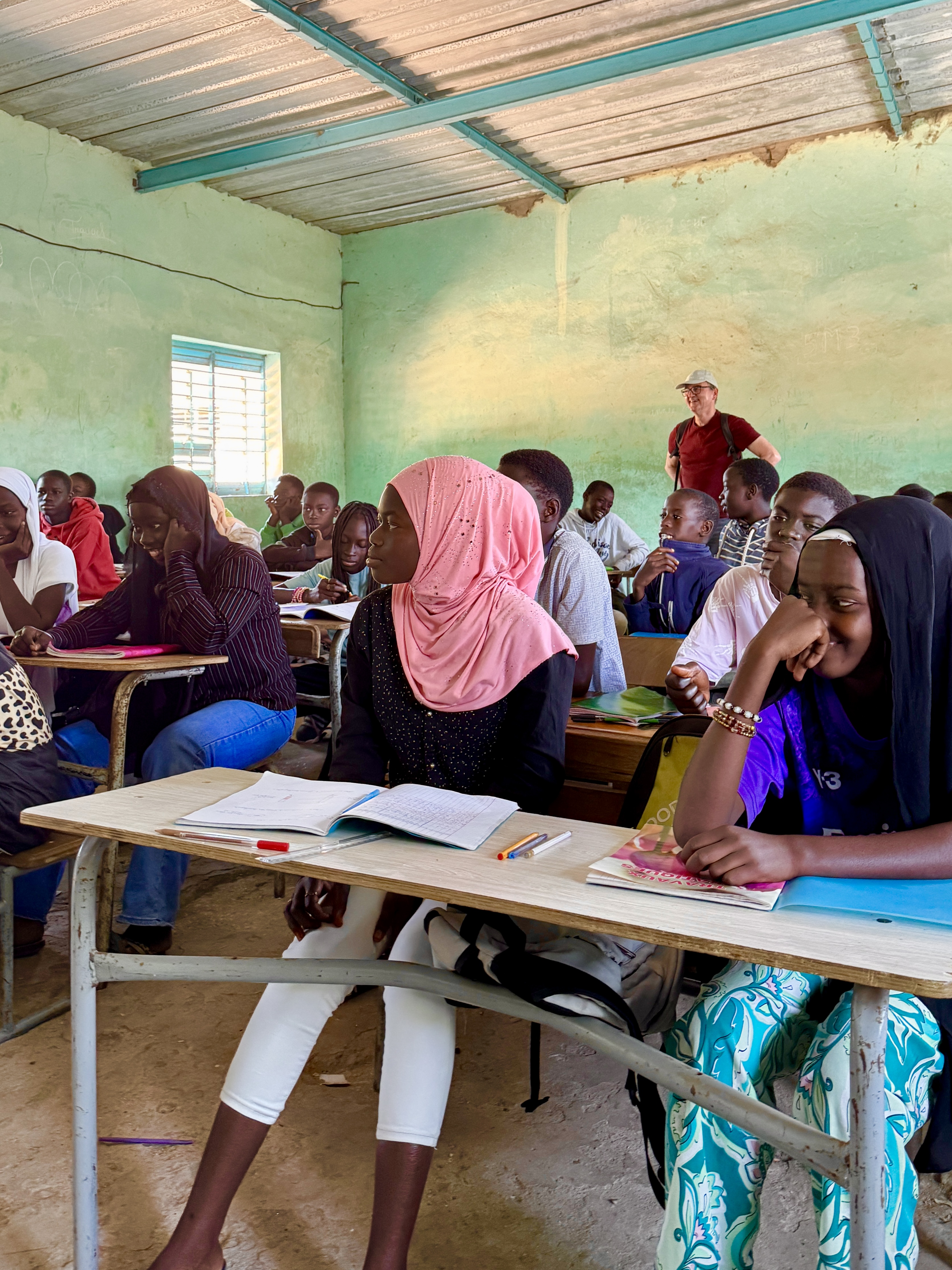Ce matin, cap sur Gandiol pour retrouver Jean Noël, figure clé d’une association humanitaire où mes beaux-parents sont engagés. L’accueil est chaleureux et nous découvrons avec lui le collège et le lycée du village, véritables symboles des efforts menés pour l’éducation. Un professeur nous invite même à assister à son cours de français et à prendre place parmi les élèves.